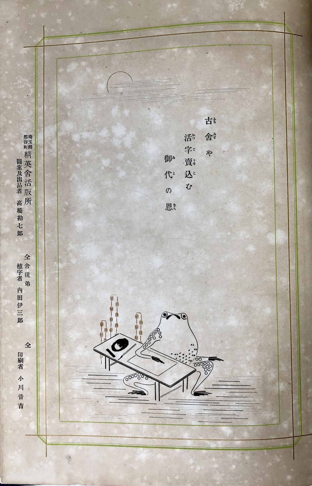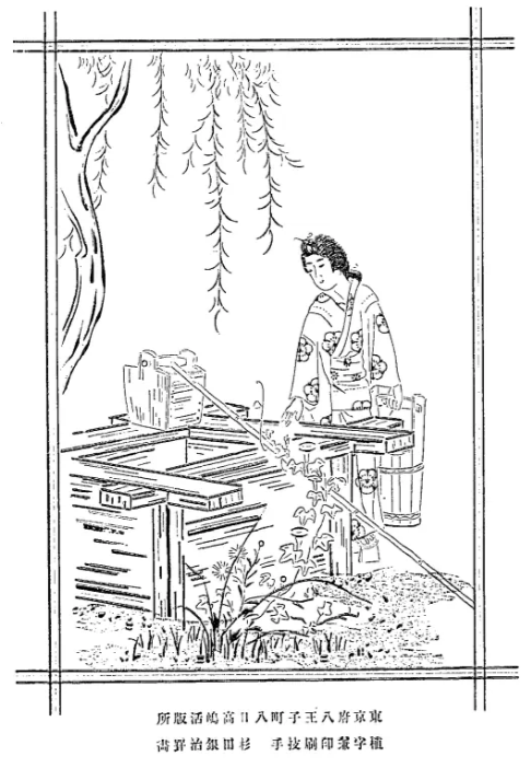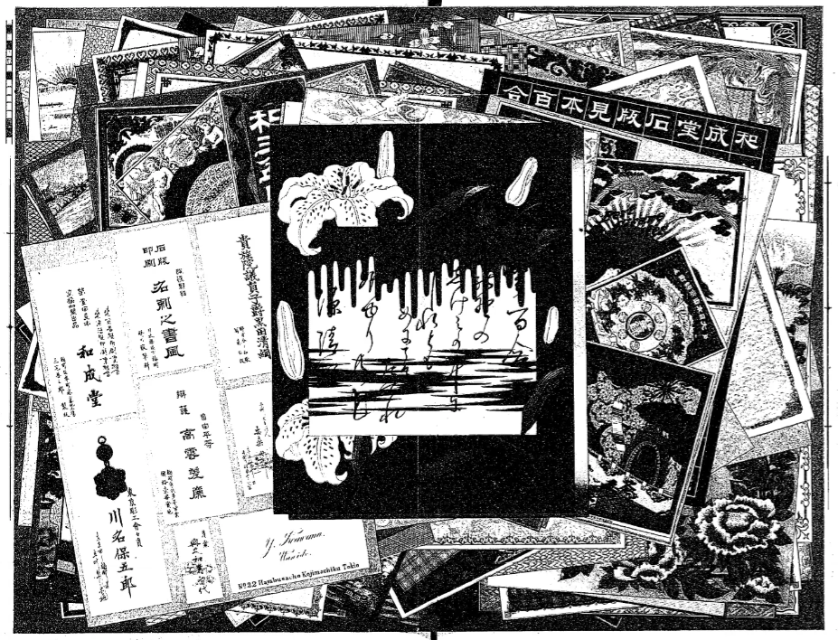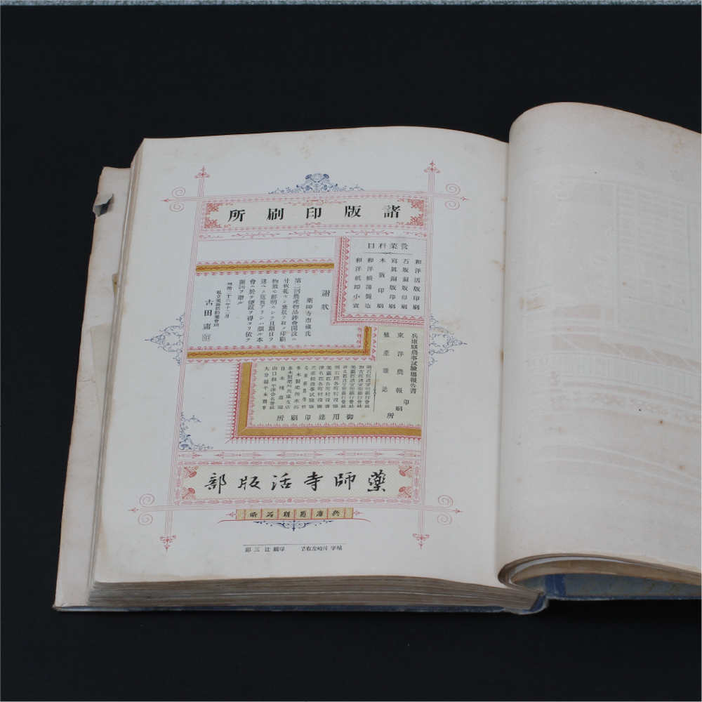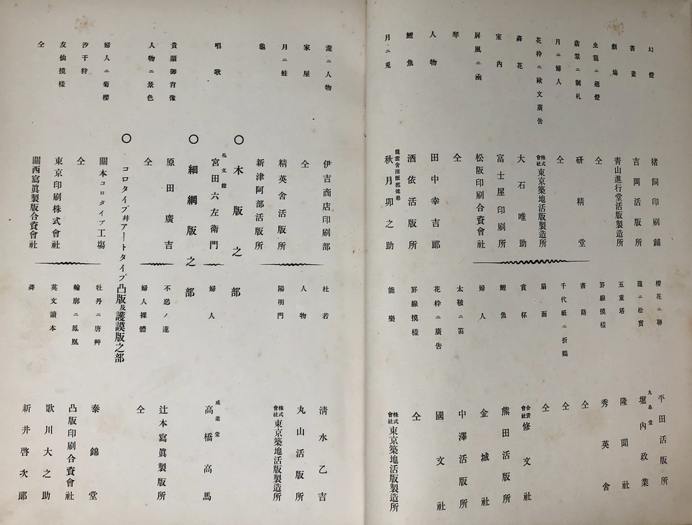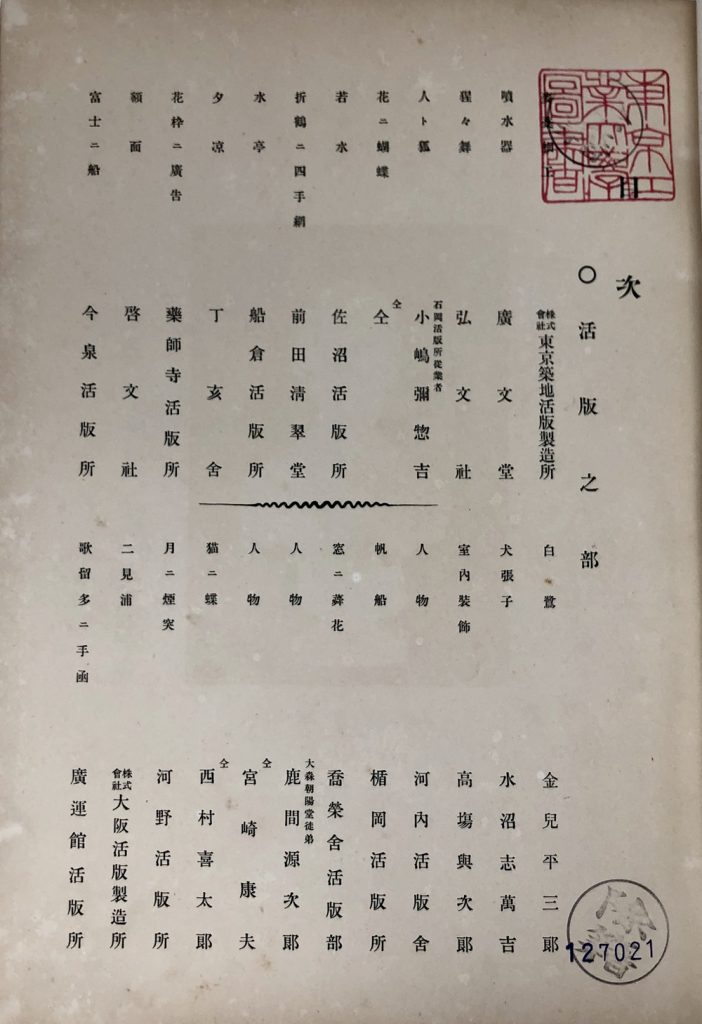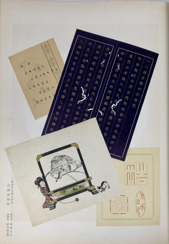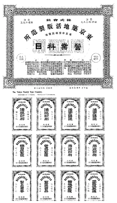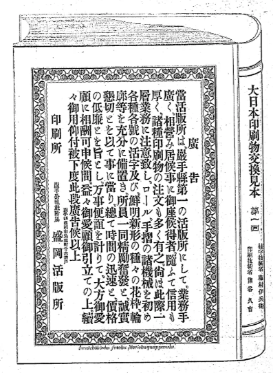 A later Japanese print sample book with advertisements: https://kogundou.exblog.jp/243577816 (print sample book in Japanese: 印刷見本帖)