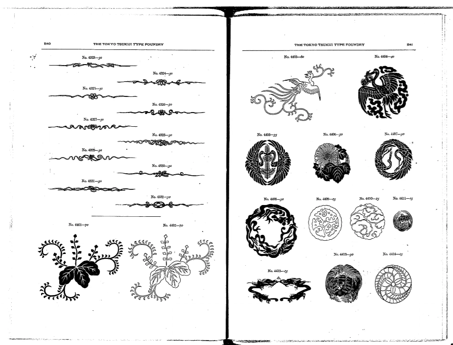 Tokyo Tsukiji Type Foundry type specimen catalogue: https://dl.ndl.go.jp/pid/854017/1/7