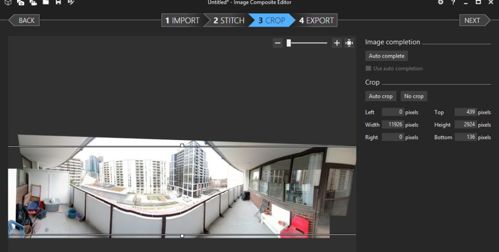 Notice how, in the above image, the pictures’ edges don’t line up neatly. In the next step you get to crop those “hangovers” or “fill them in” with junk that the computer extrapolates. Kind of like an AI hallucination: