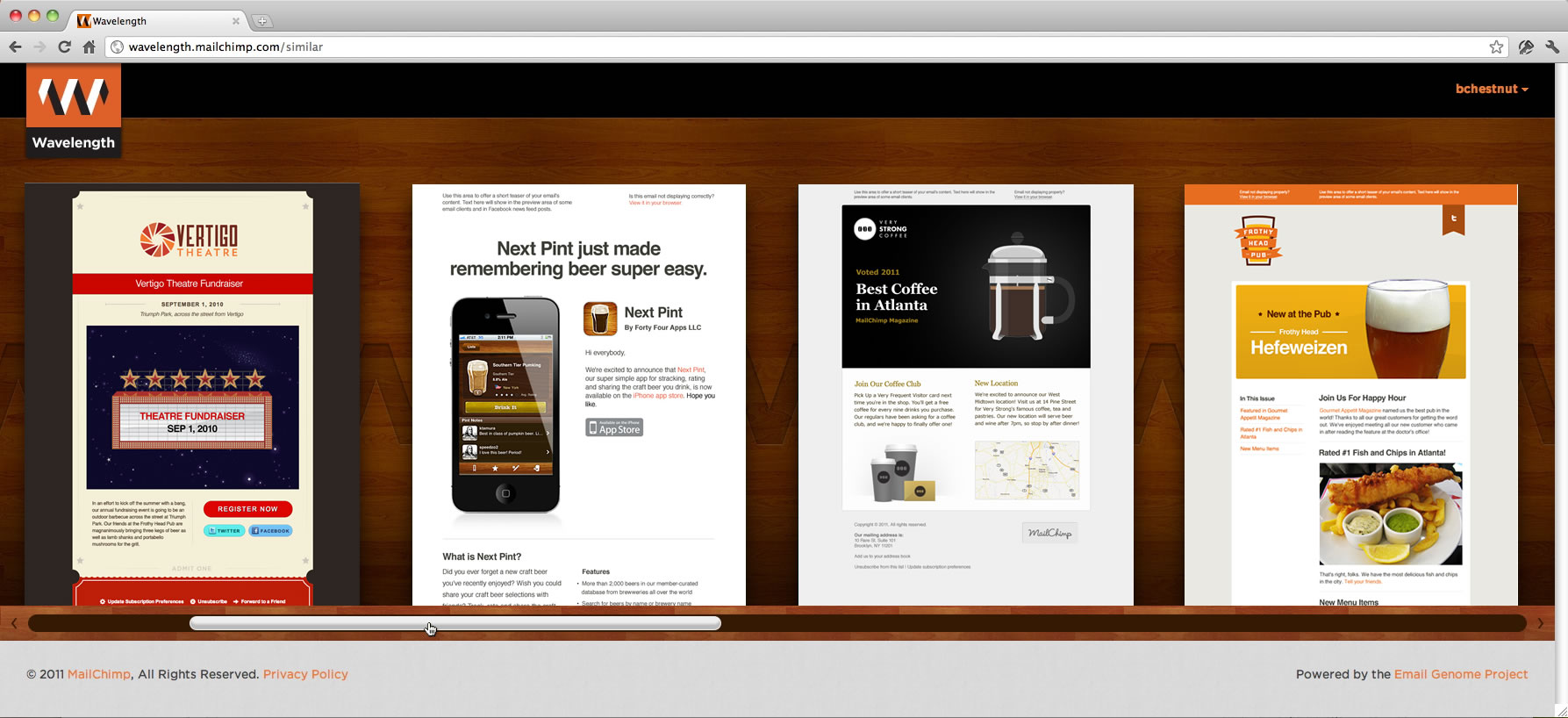 Basically, Wavelength analyzes your MailChimp list, then compares it to all other MailChimp lists (really, really fast). It looks for subscriber overlap, then recommends similar publishers by showing you screenshots of the email campaigns they’ve sent.