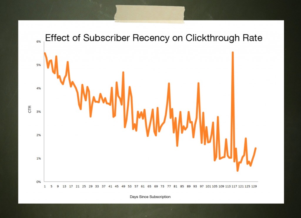 After about 4 months, your average click rate for your average email subscriber drops to less than 1%.