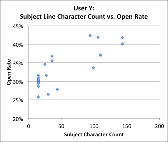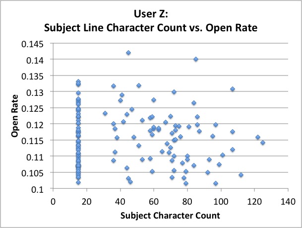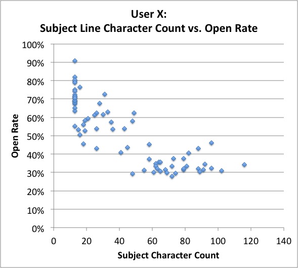 Here’s a user whose campaigns with longer subjects were correlated with lower open rates: