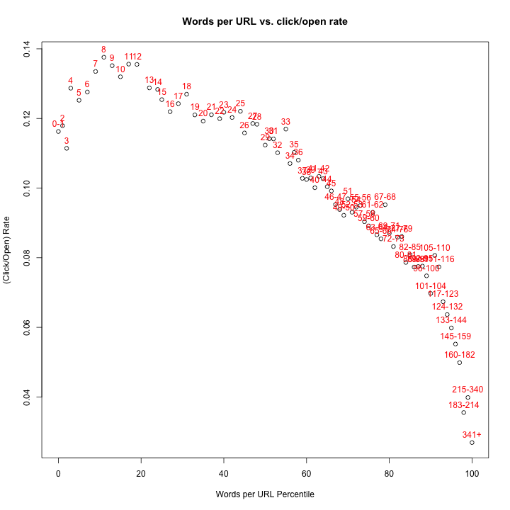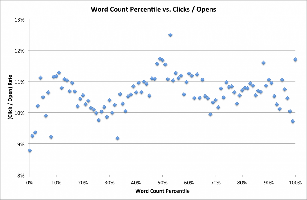 I’m not seeing a whole lot there. As word counts increase, click rates go all over the place. There must be more to it than that.