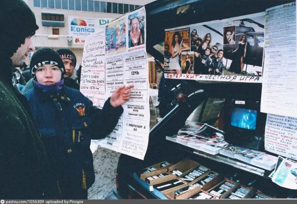 Here is an example of the kind of pictures you’ll find – these are from a 1990s Moscow market that specialized in bootleg software and VHS tapes: